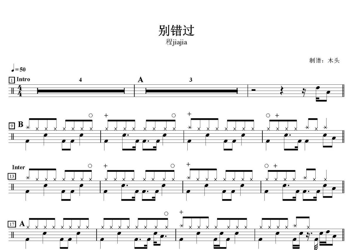 程jiajia《别错过》鼓谱 - 架子鼓谱
