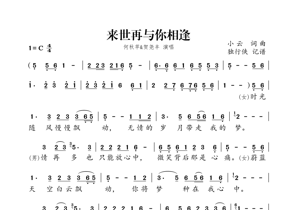 何秋苹&贺尧丰《来世再与你相逢》简谱