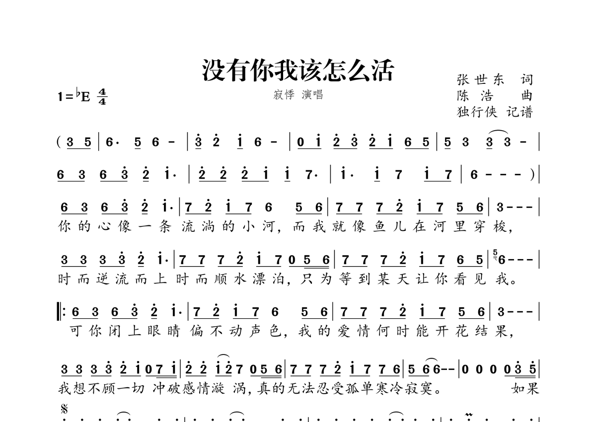 寂悸《没有你我该怎么活》简谱