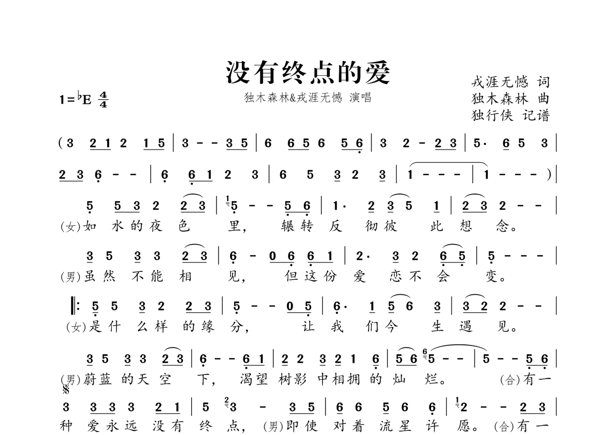 独木森林、戎涯无憾《没有终点的爱》简谱