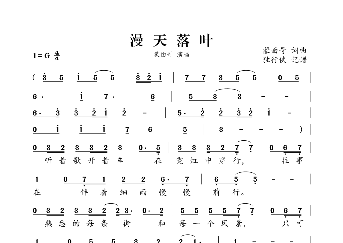 蒙面哥《漫天落叶》简谱