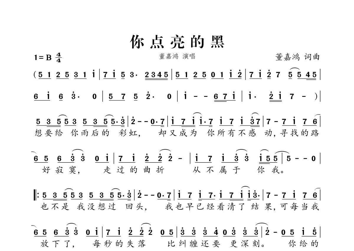 董嘉鸿《你点亮的黑》简谱