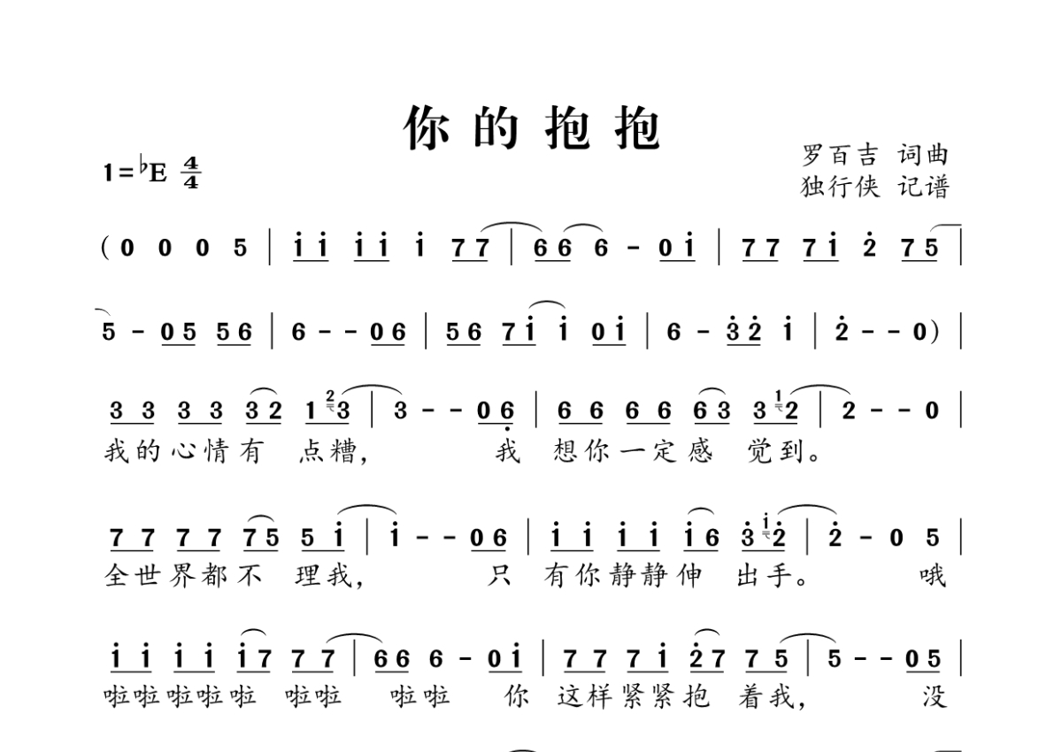 《你的抱抱》,拍号为4/4拍,这份简谱共有两张高清图谱,图谱由 @独行侠 编配上传。