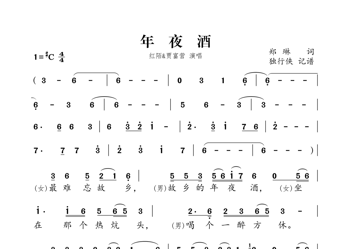 红陌&贾富营《年夜酒》简谱