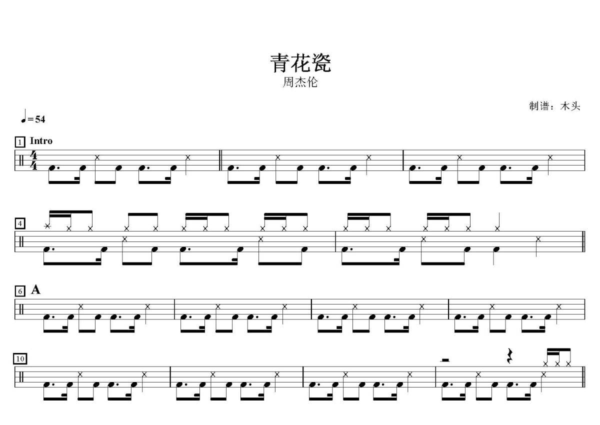周杰伦《青花瓷》鼓谱 - 架子鼓谱