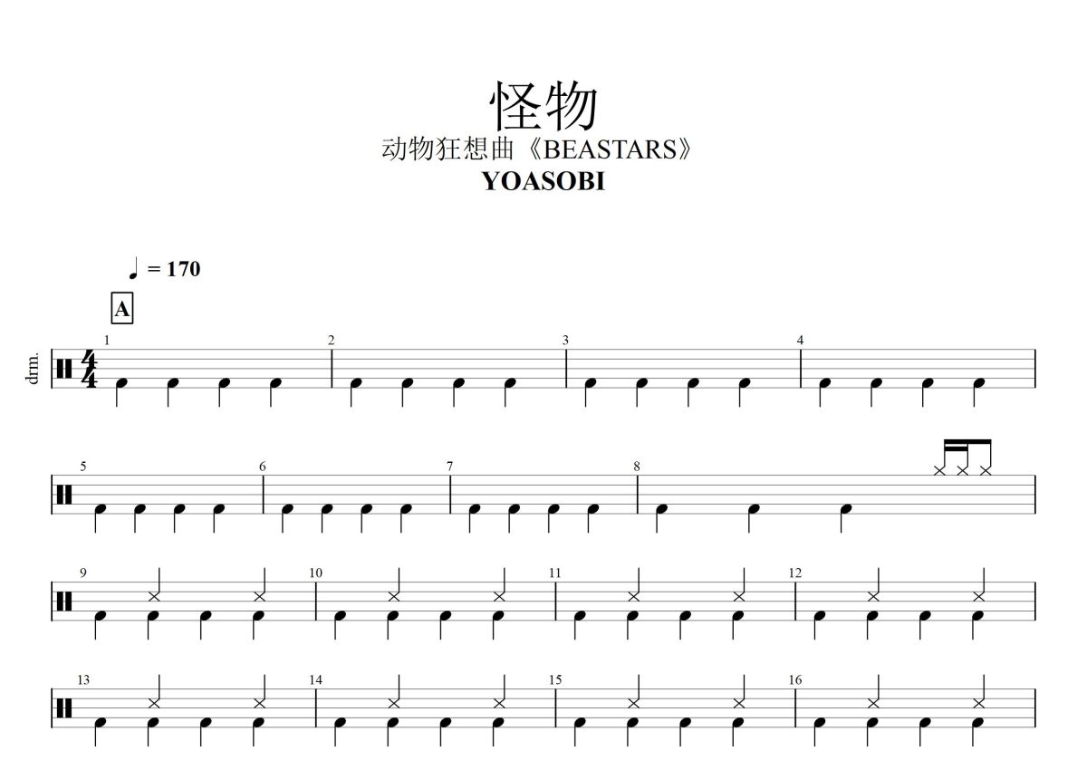 YOASOBI《怪物》鼓谱 - 架子鼓谱