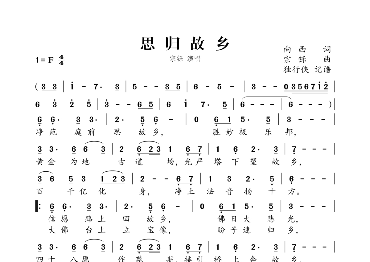 《思归故乡》是宗铄演唱的一首歌曲,拍号为4/4拍,这份简谱共有一张高清图谱,图谱由 @独行侠 编配上传。