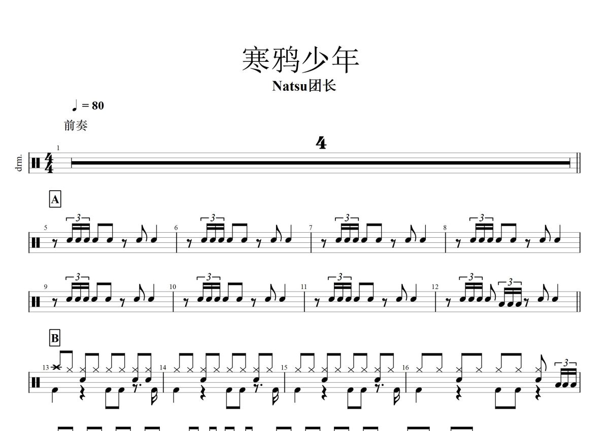 Natsu团长《寒鸦少年》鼓谱 - 架子鼓谱