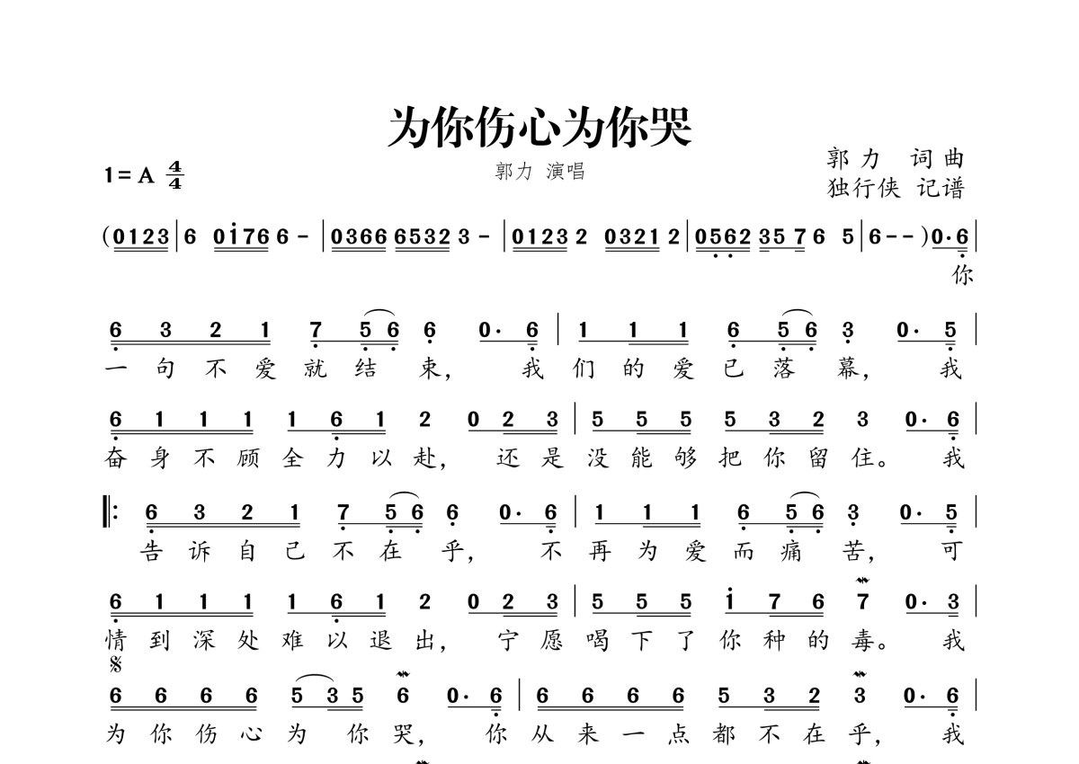 郭力《为你伤心为你哭》简谱