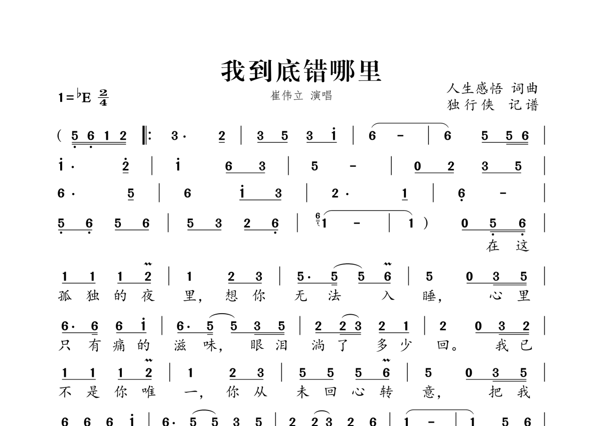 我到底错哪里简谱 - 崔伟立演唱