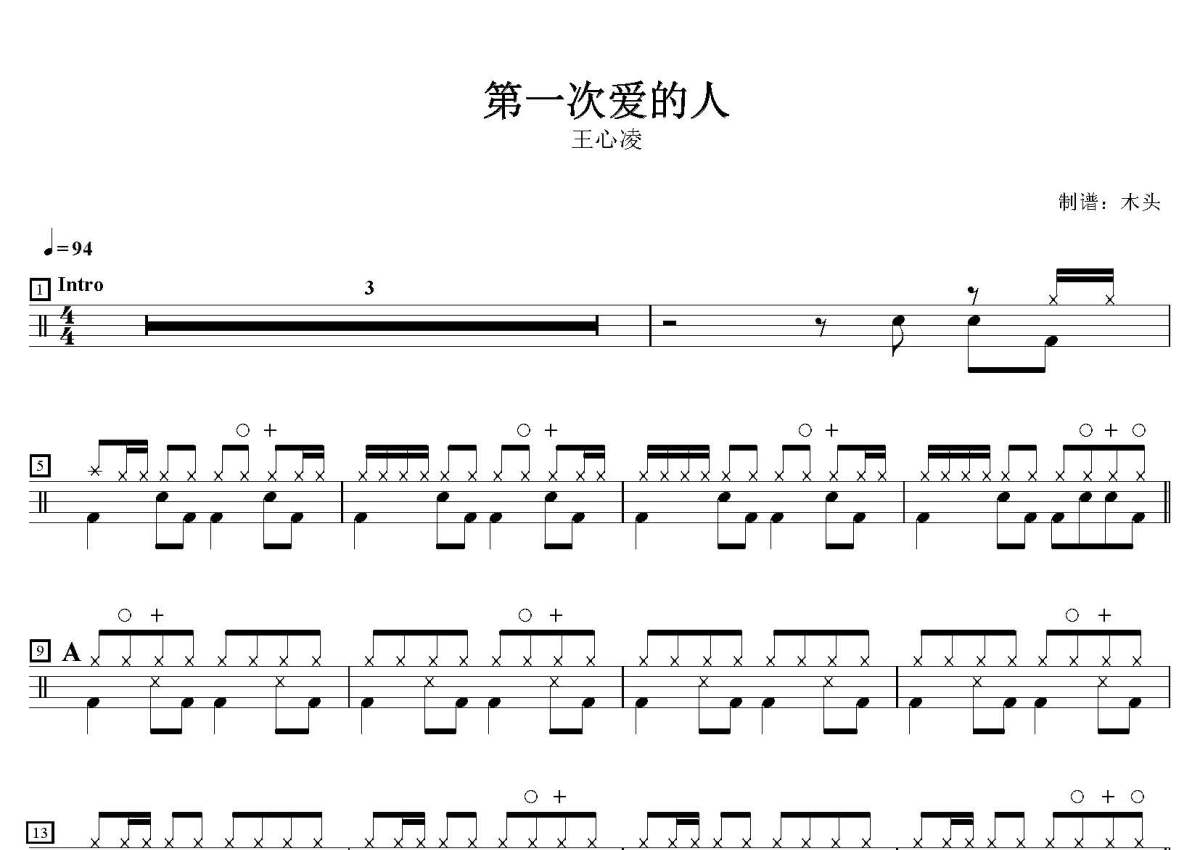 《第一次爱的人》是王心凌演唱的一首歌曲,这份鼓谱共有三张高清图谱,图谱由 @打鼓谱 编配上传,图谱使用五线谱编配,使用这份第一次爱的人架子鼓谱,你将能够轻松地敲打出这首王心凌的第一次爱的人,快来尝试吧。歌曲名:第一次爱的人,歌手名:王心凌,专辑名:爱你。