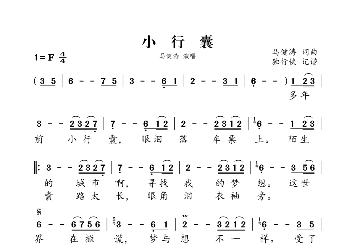马健涛《小行囊》简谱