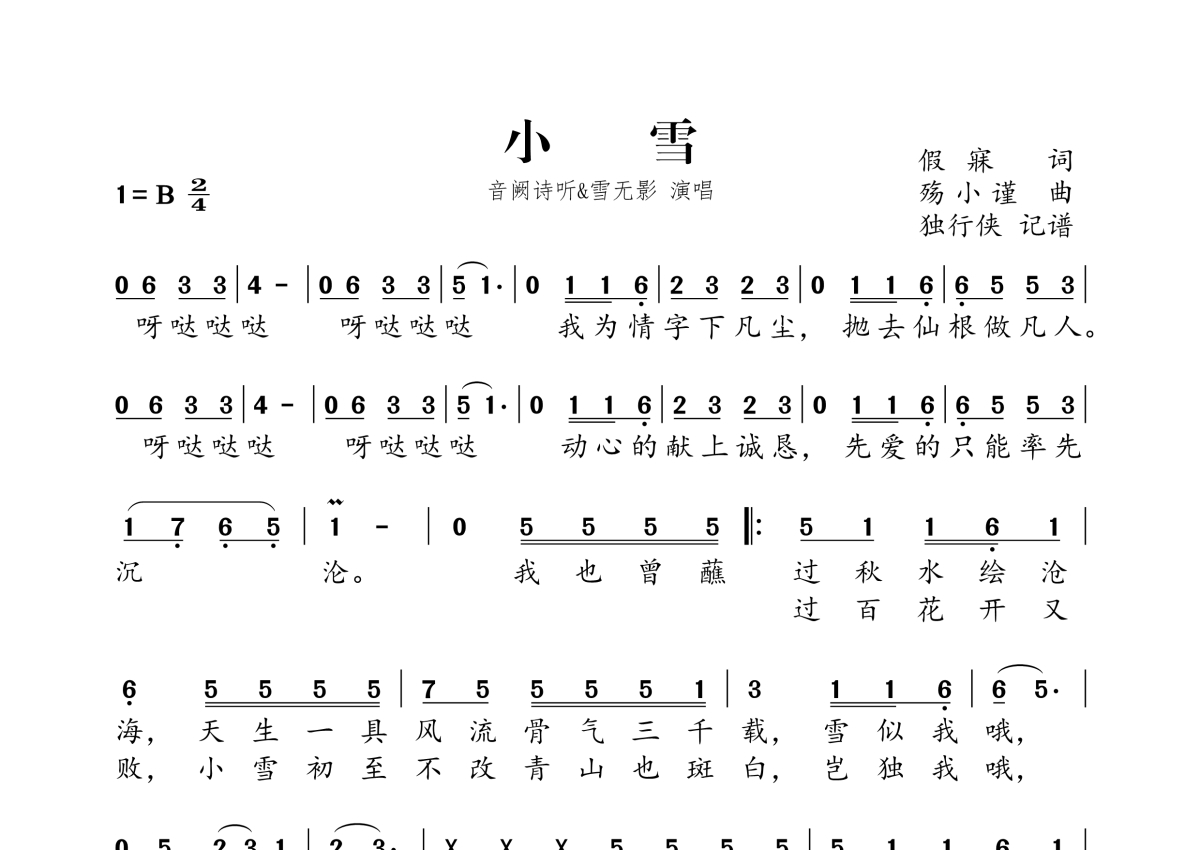 音阙诗听&雪无影《小雪》简谱
