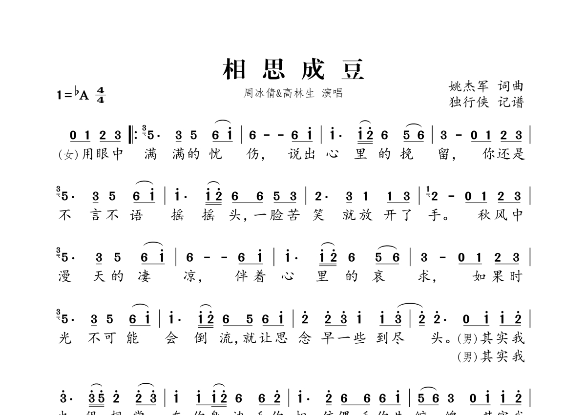 周冰倩、高林生《相思成豆》简谱