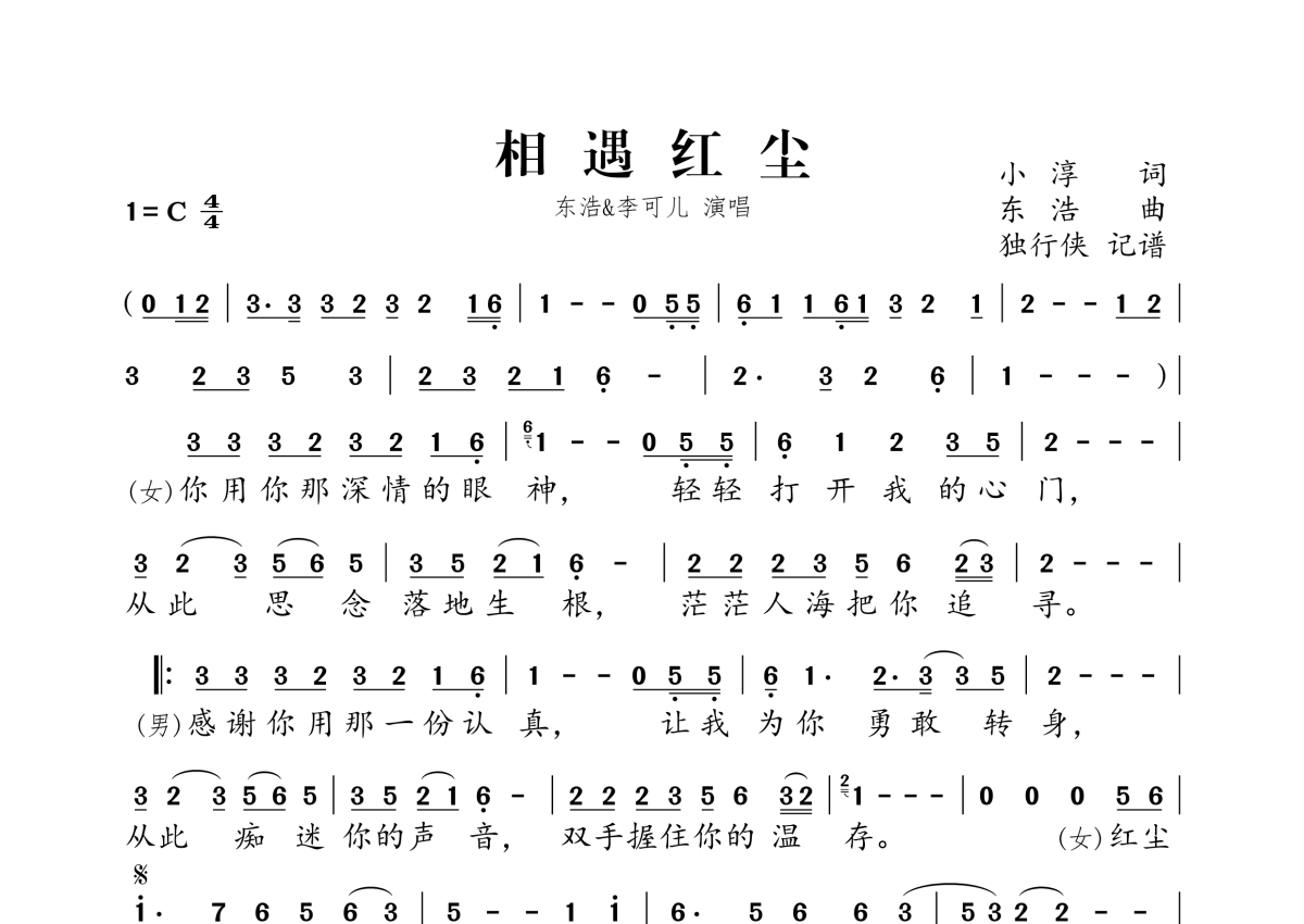 东浩&李可儿《相遇红尘》简谱
