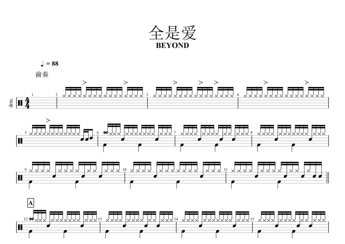 Beyond《全是爱》鼓谱 - 架子鼓谱