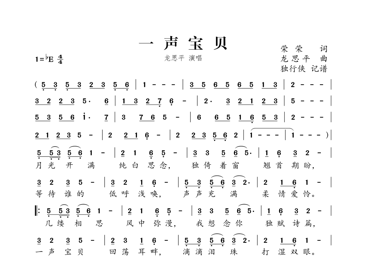 龙思平《一声宝贝》简谱