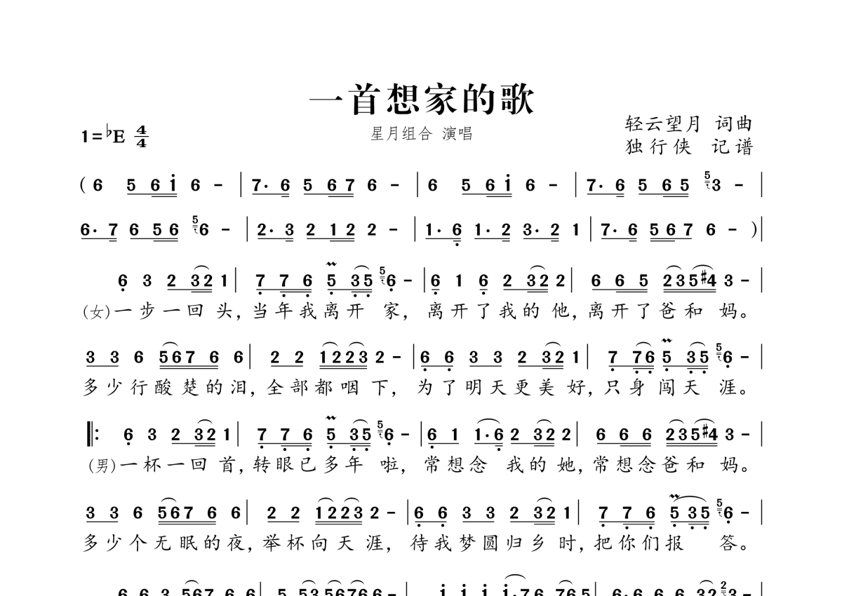 星月组合《一首想家的歌》简谱