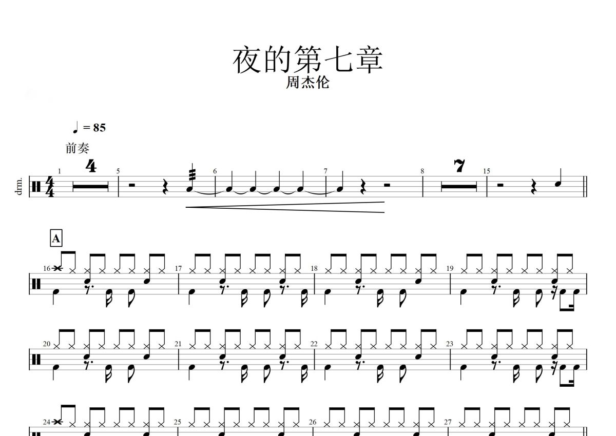 周杰伦《夜的第七章》鼓谱 - 架子鼓谱
