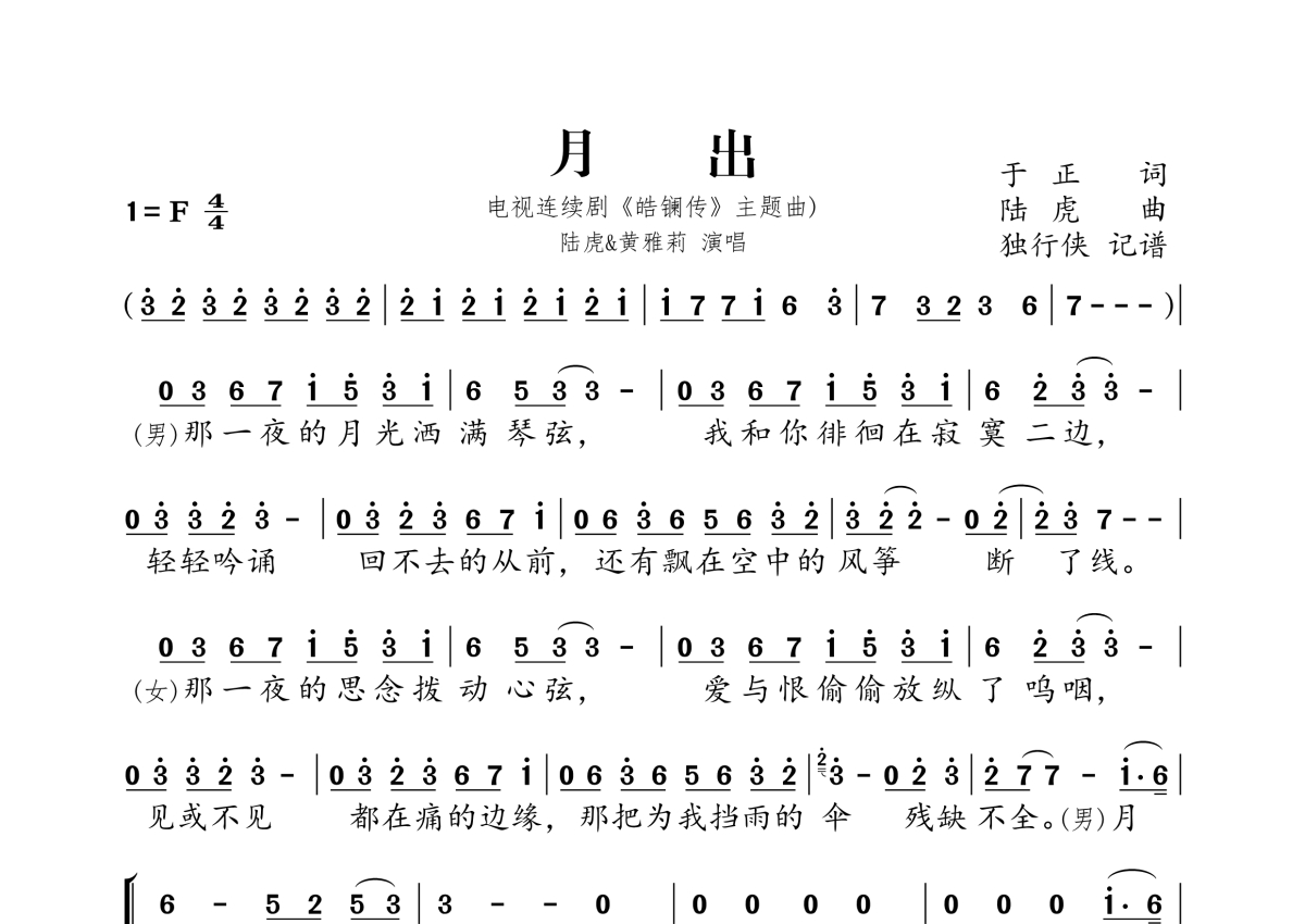 月出简谱 - 陆虎、黄雅莉演唱