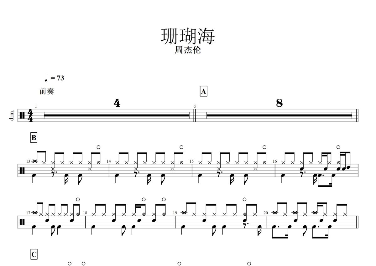周杰伦/梁心颐《珊瑚海》鼓谱 - 架子鼓谱