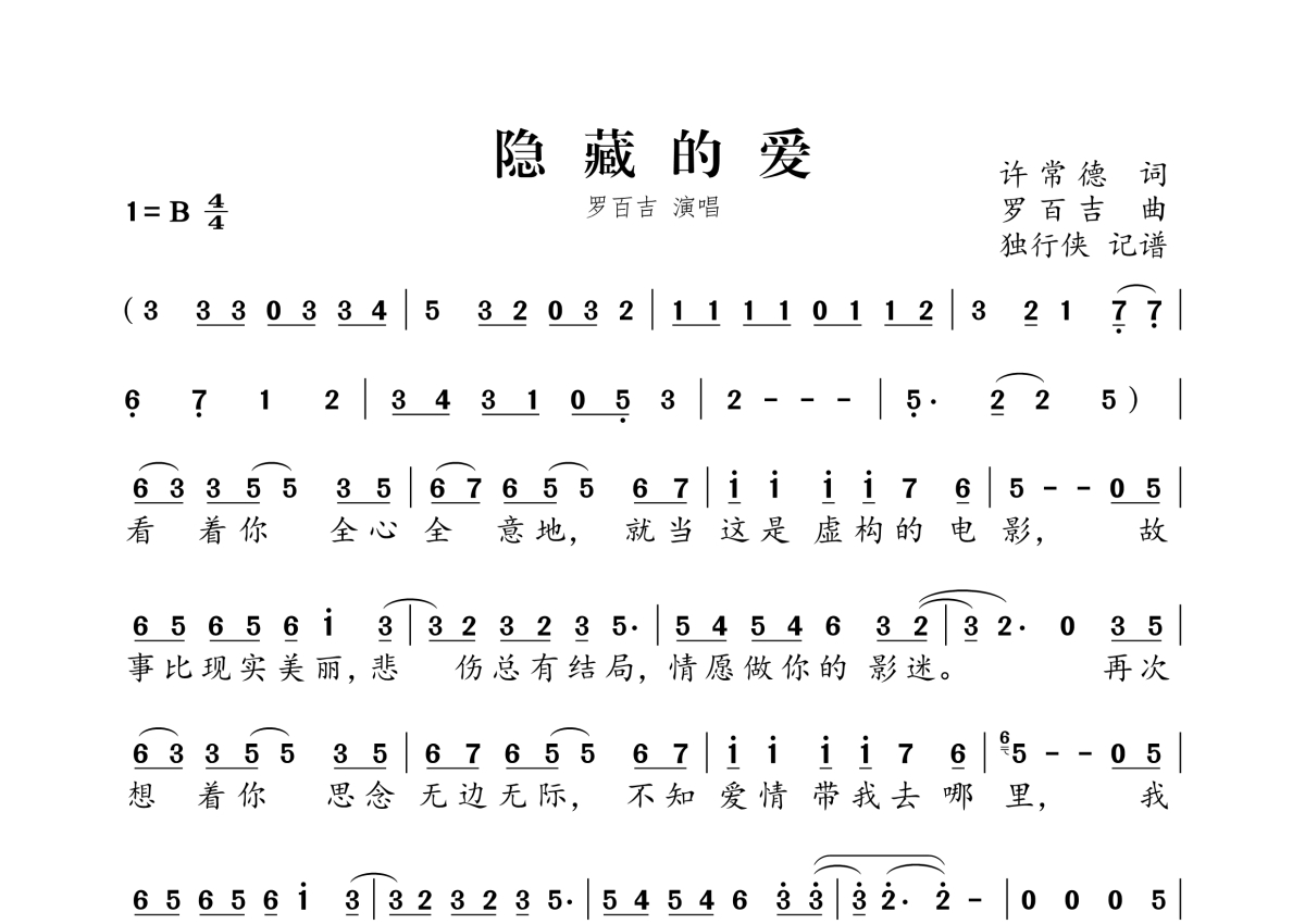 罗百吉《隐藏的爱》简谱