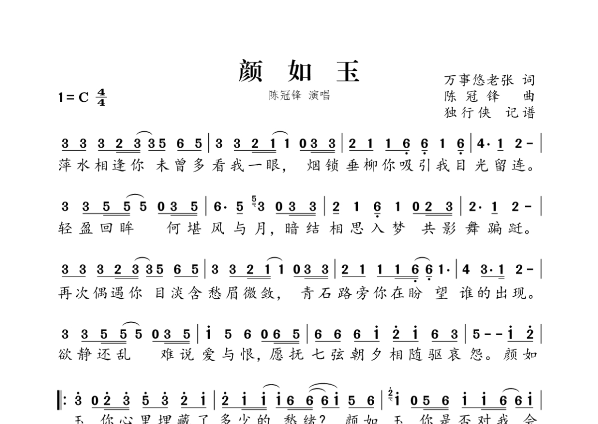 陈冠锋《颜如玉》简谱