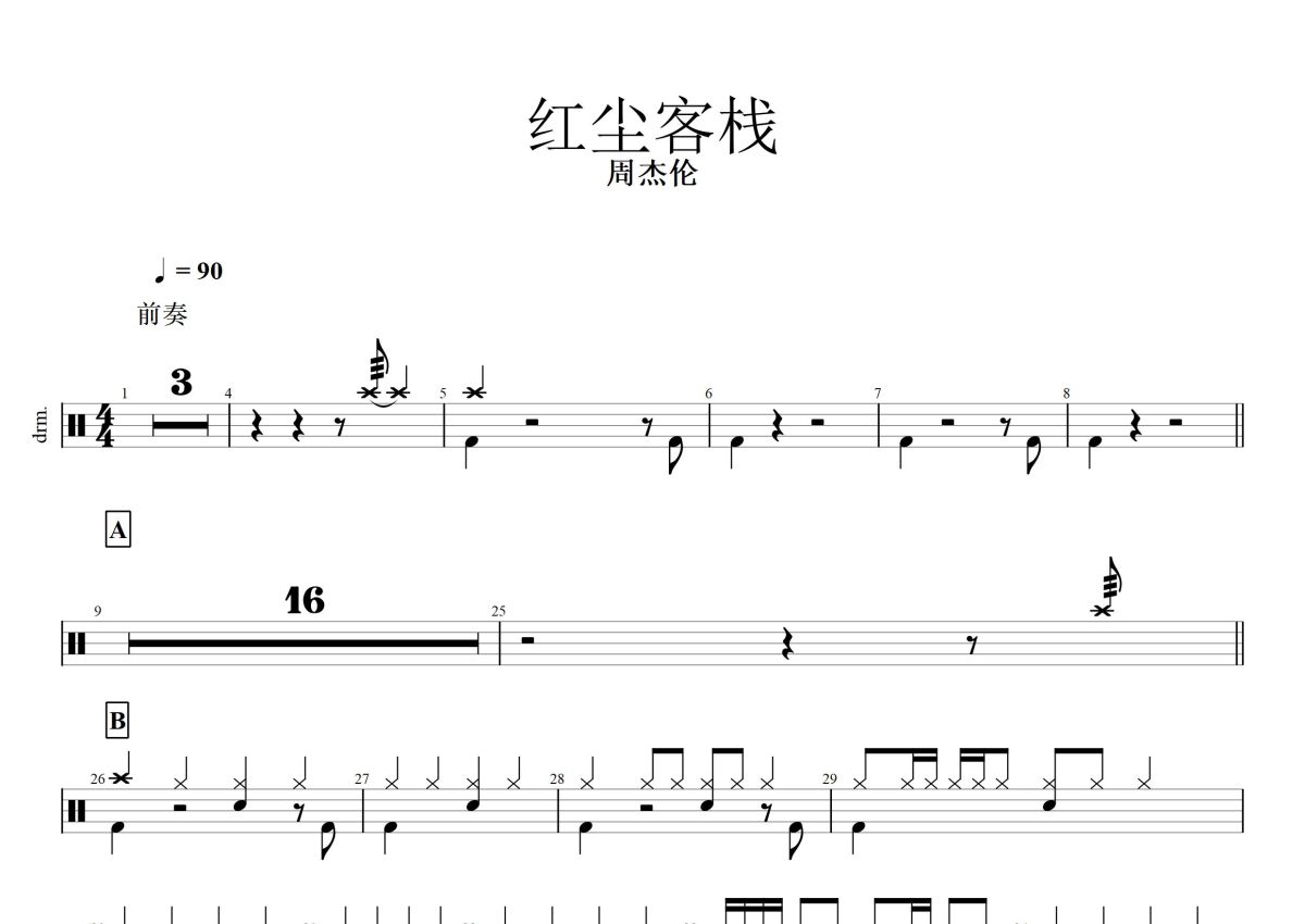 周杰伦《红尘客栈》鼓谱 - 架子鼓谱
