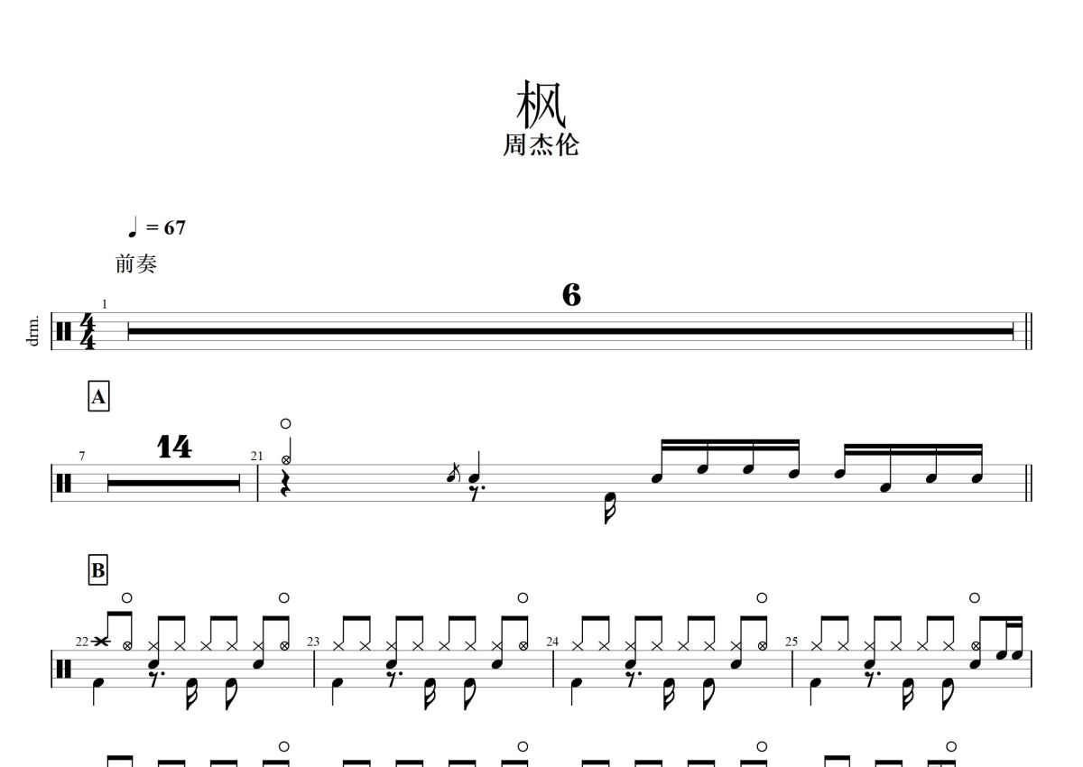 周杰伦《枫》鼓谱 - 架子鼓谱