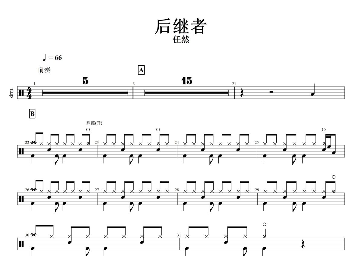 任然《后继者》鼓谱 - 架子鼓谱