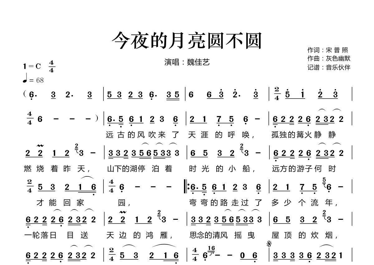 《今夜的月亮圆不圆》是魏佳艺演唱的一首歌曲,这份简谱共有一张高清图谱,图谱由 @音乐伙伴 编配上传。