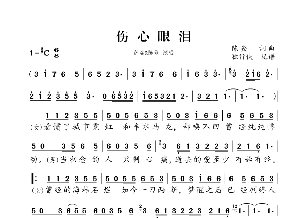 伤心眼泪简谱 - 萨洛、陈焱演唱