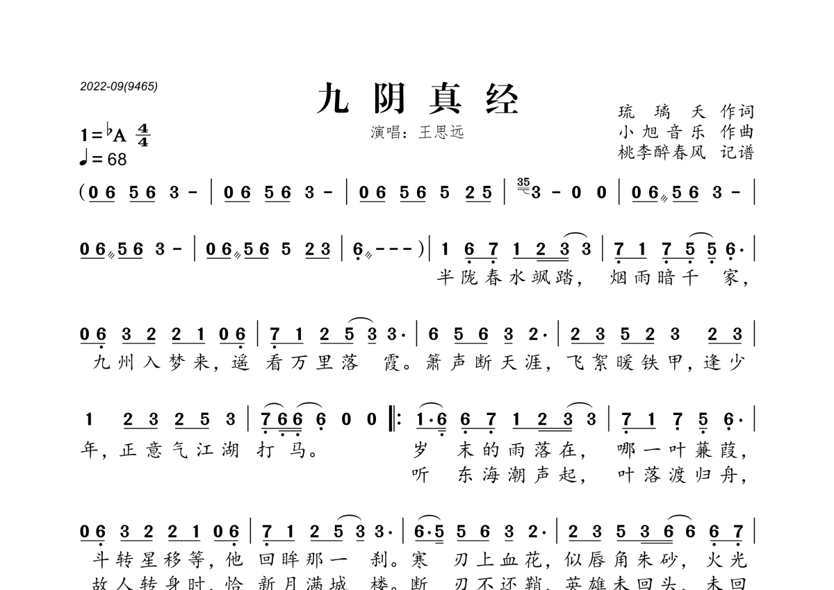 王思远《九阴真经》简谱