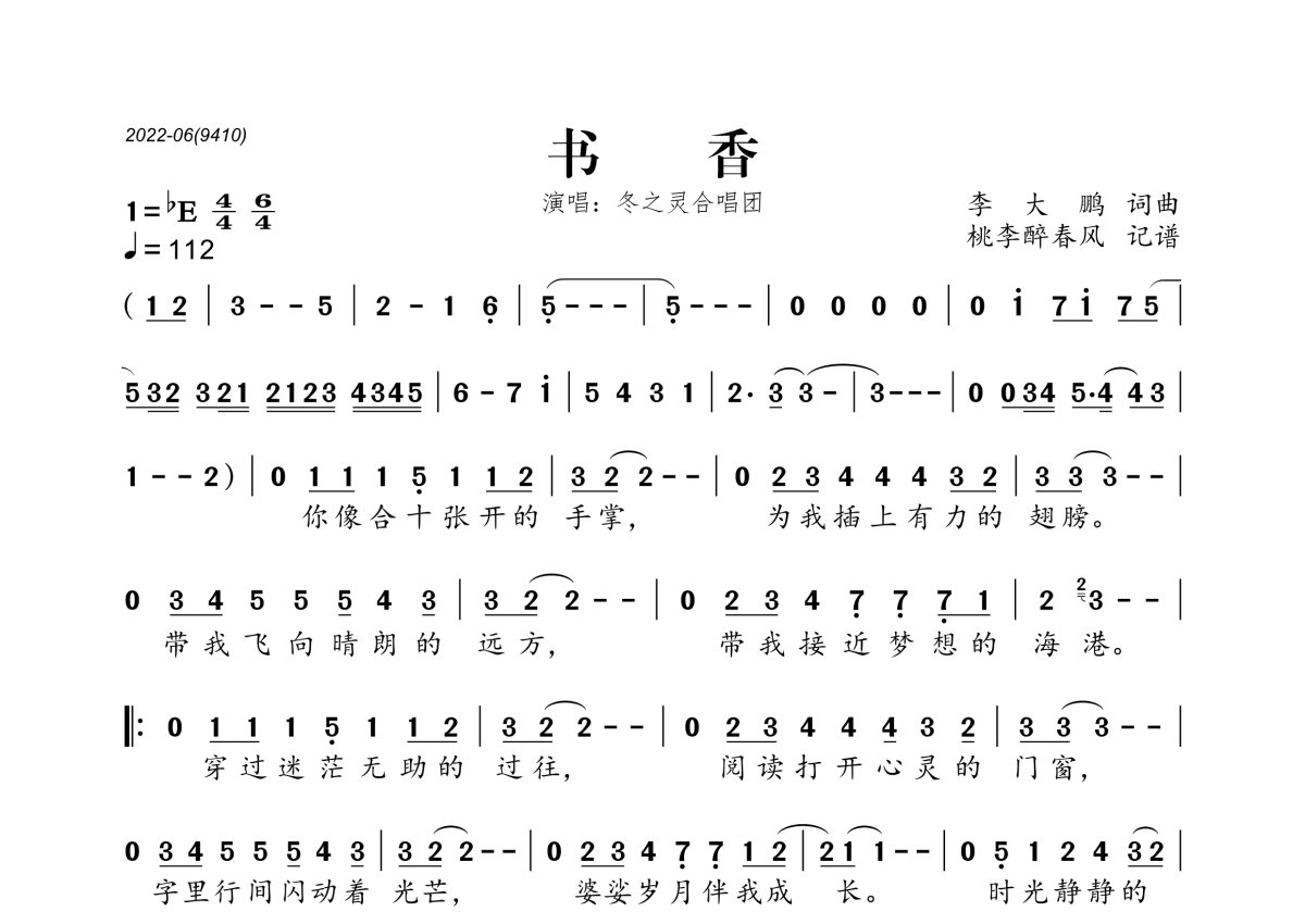冬之灵合唱团《书香》简谱