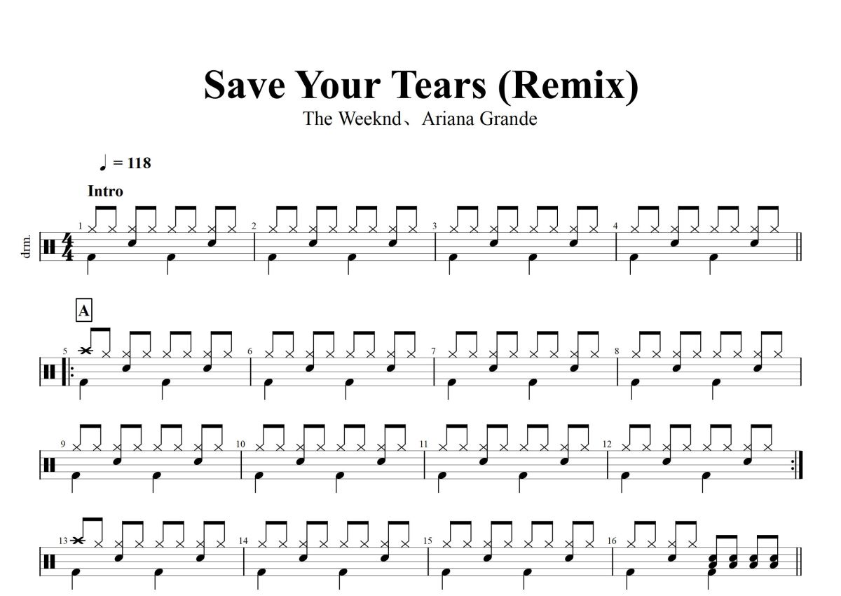 《Save Your Tears》是The Weeknd / Ariana Grande演唱的一首歌曲,Remix,这份鼓谱共有两张高清图谱,图谱由 @打鼓谱 编配上传,图谱使用五线谱编配,使用这份Save Your Tears架子鼓谱,你将能够轻松地敲打出这首The Weeknd / Ariana Grande的Save Your Tears,快来尝试吧。表演者: The Weeknd / Ariana Grande