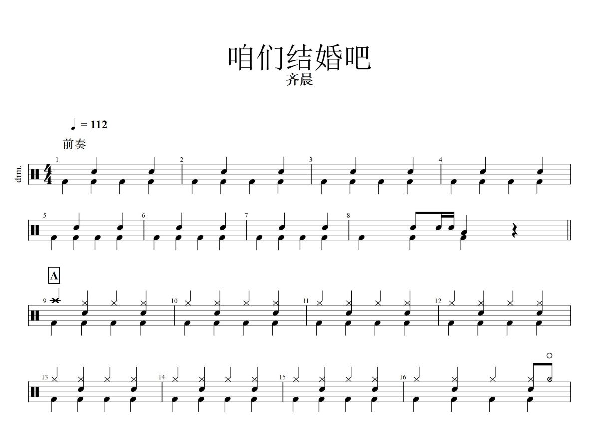 齐晨《咱们结婚吧》鼓谱 - 架子鼓谱
