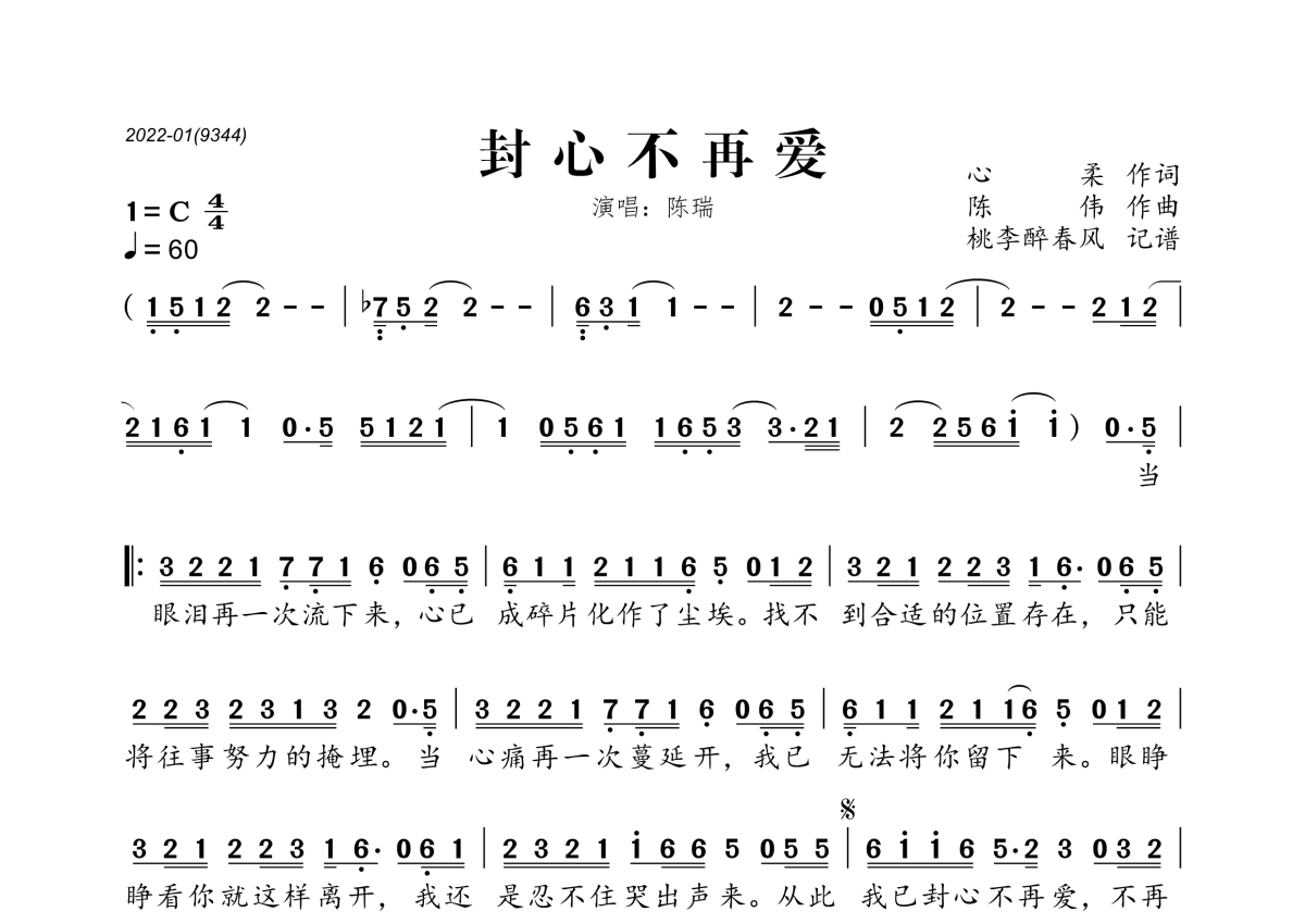 陈瑞《封心不再爱》简谱