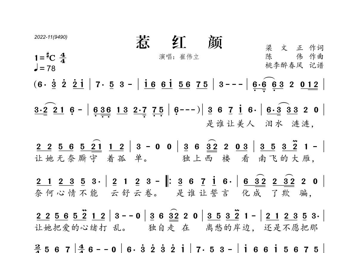 崔伟立《惹红颜》简谱