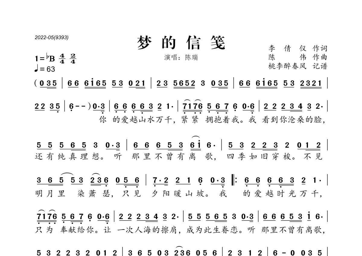 陈瑞《梦的信笺》简谱