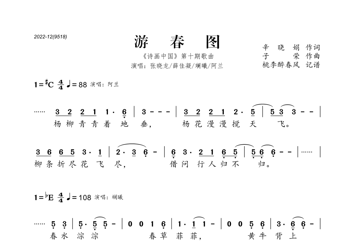 张晓龙&薛佳凝&斓曦&阿兰《游春图》简谱