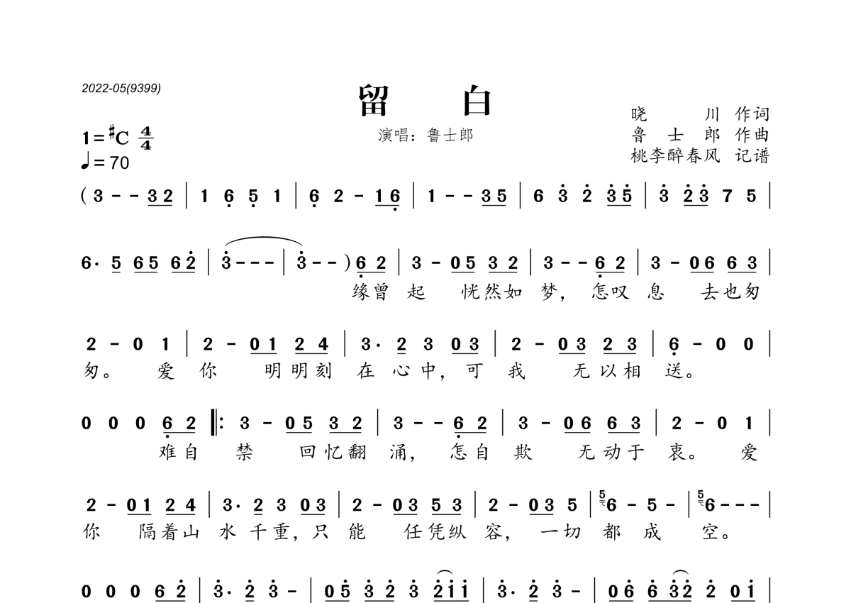 鲁士郎《留白》简谱