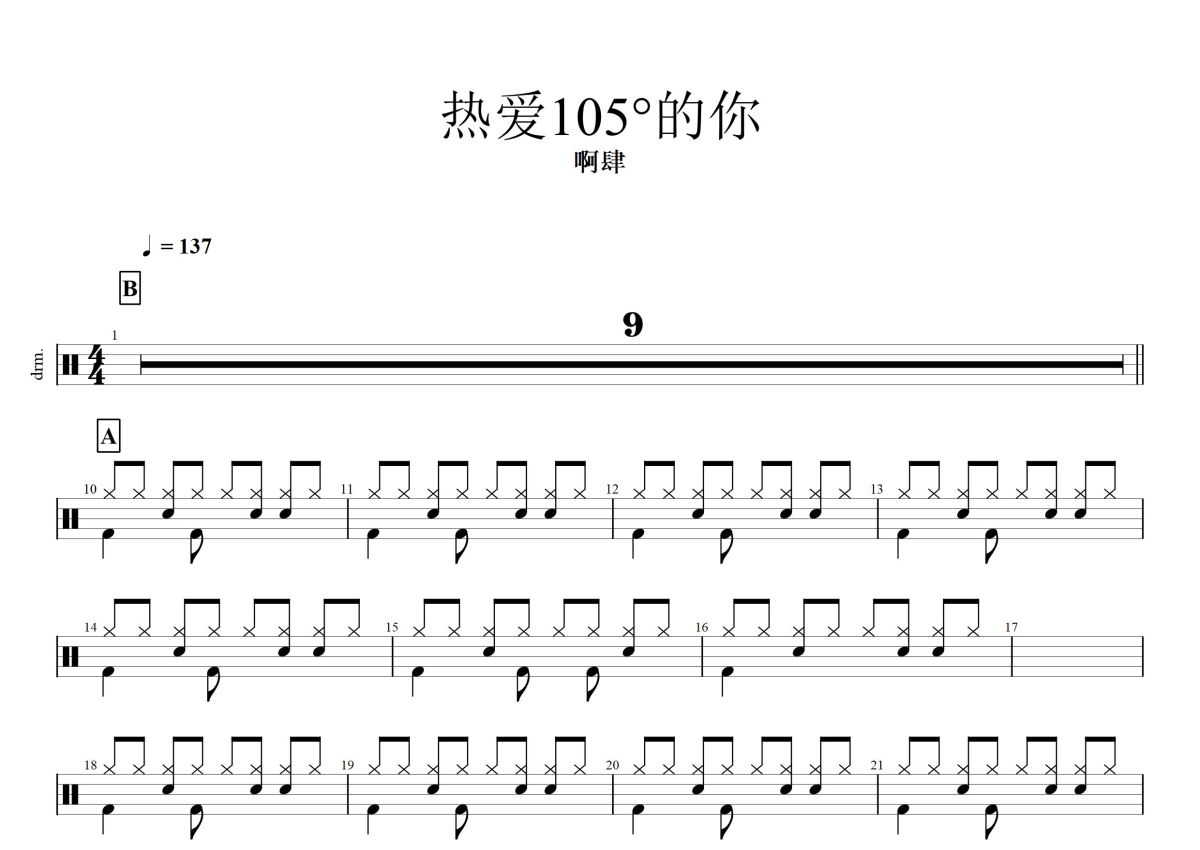 阿肆《热爱105℃的你》鼓谱 - 架子鼓谱