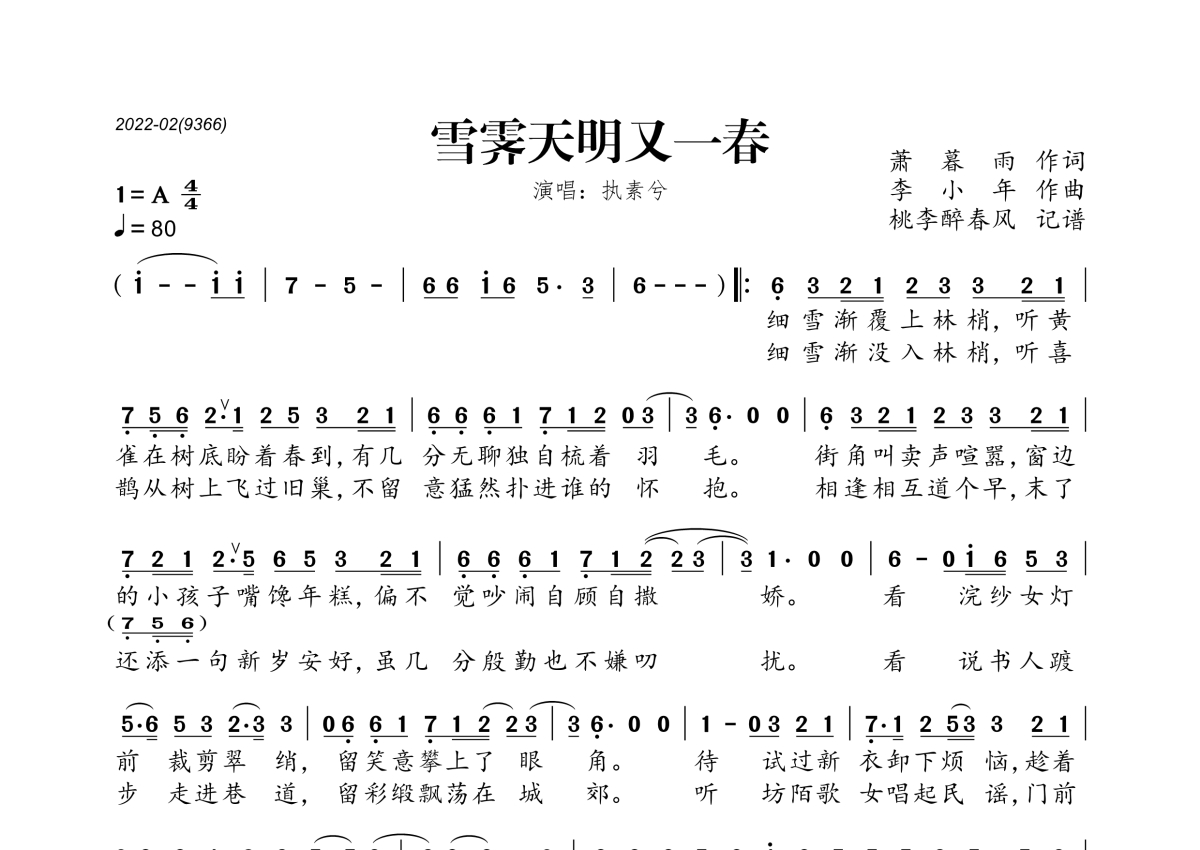 执素兮《雪霁天明又一春》简谱