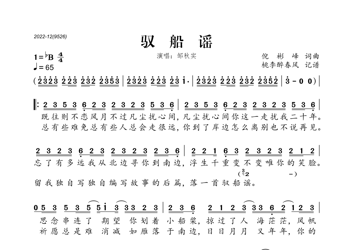 邹秋实《驭船谣》简谱