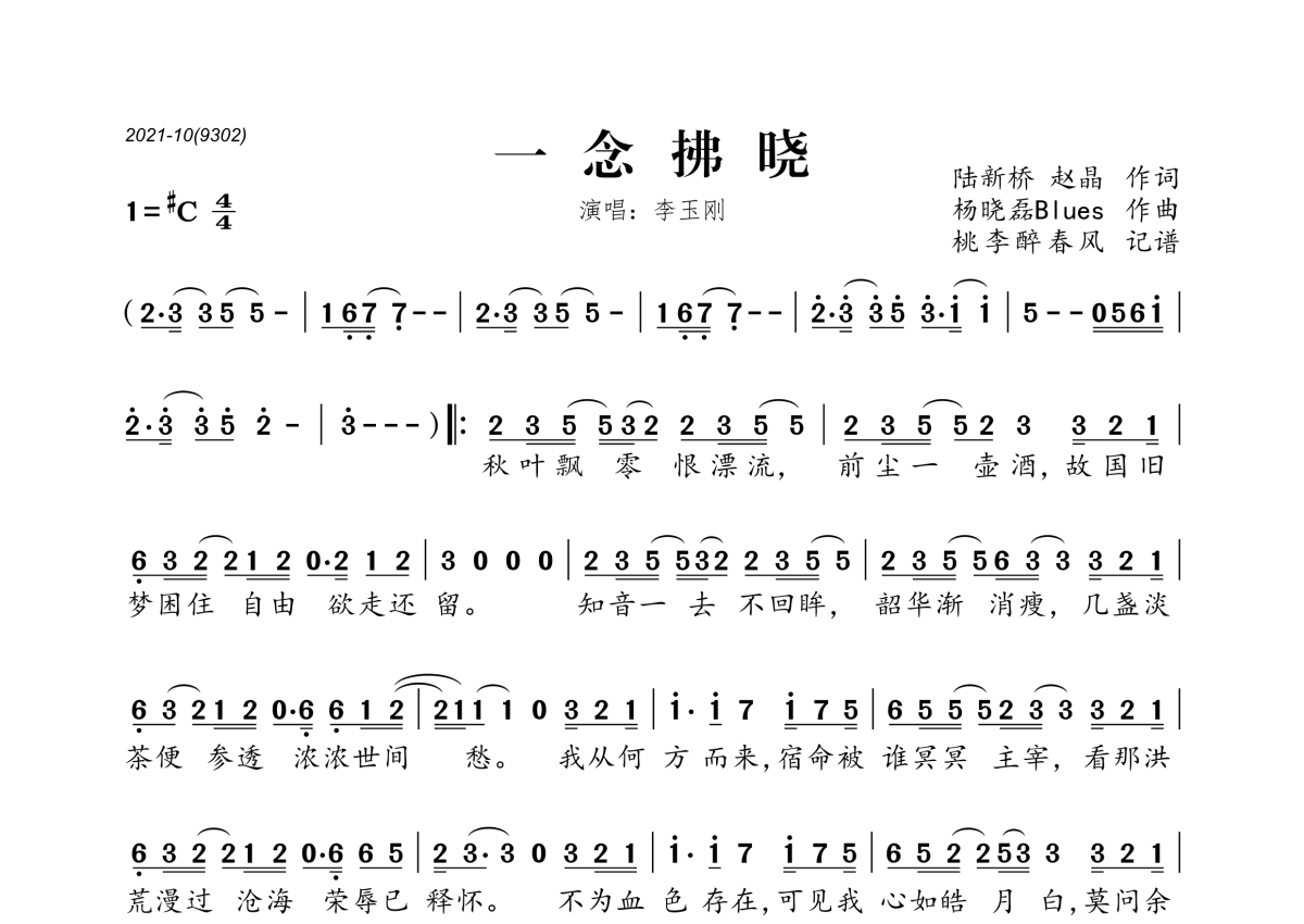 李玉刚《一念拂晓》简谱