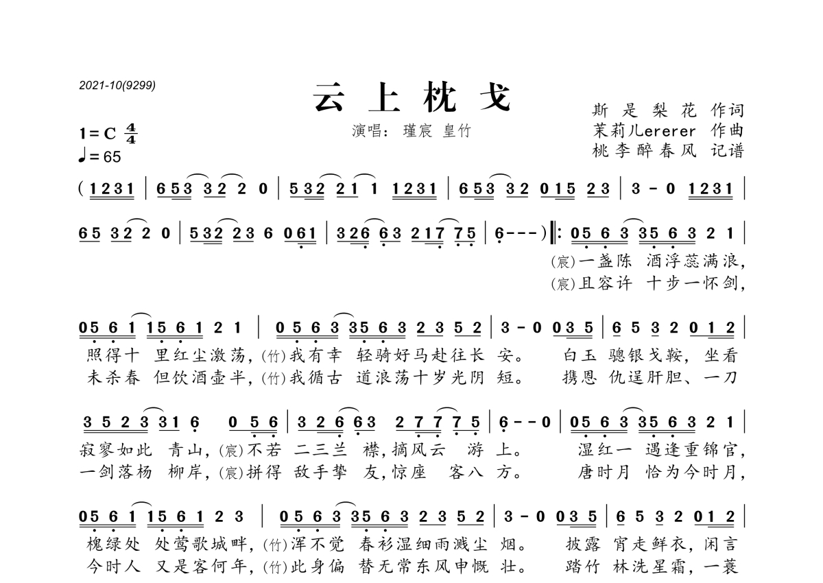 皇竹&瑾宸《云上枕戈》简谱
