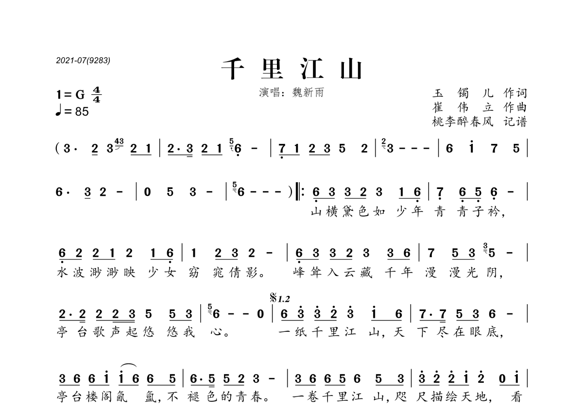 魏新雨《千里江山》简谱
