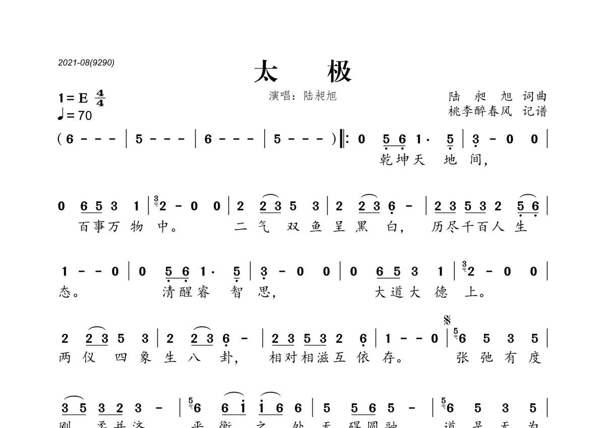 陆昶旭《太极》简谱