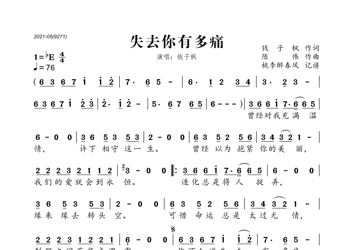 钱子枫《失去你有多痛》简谱