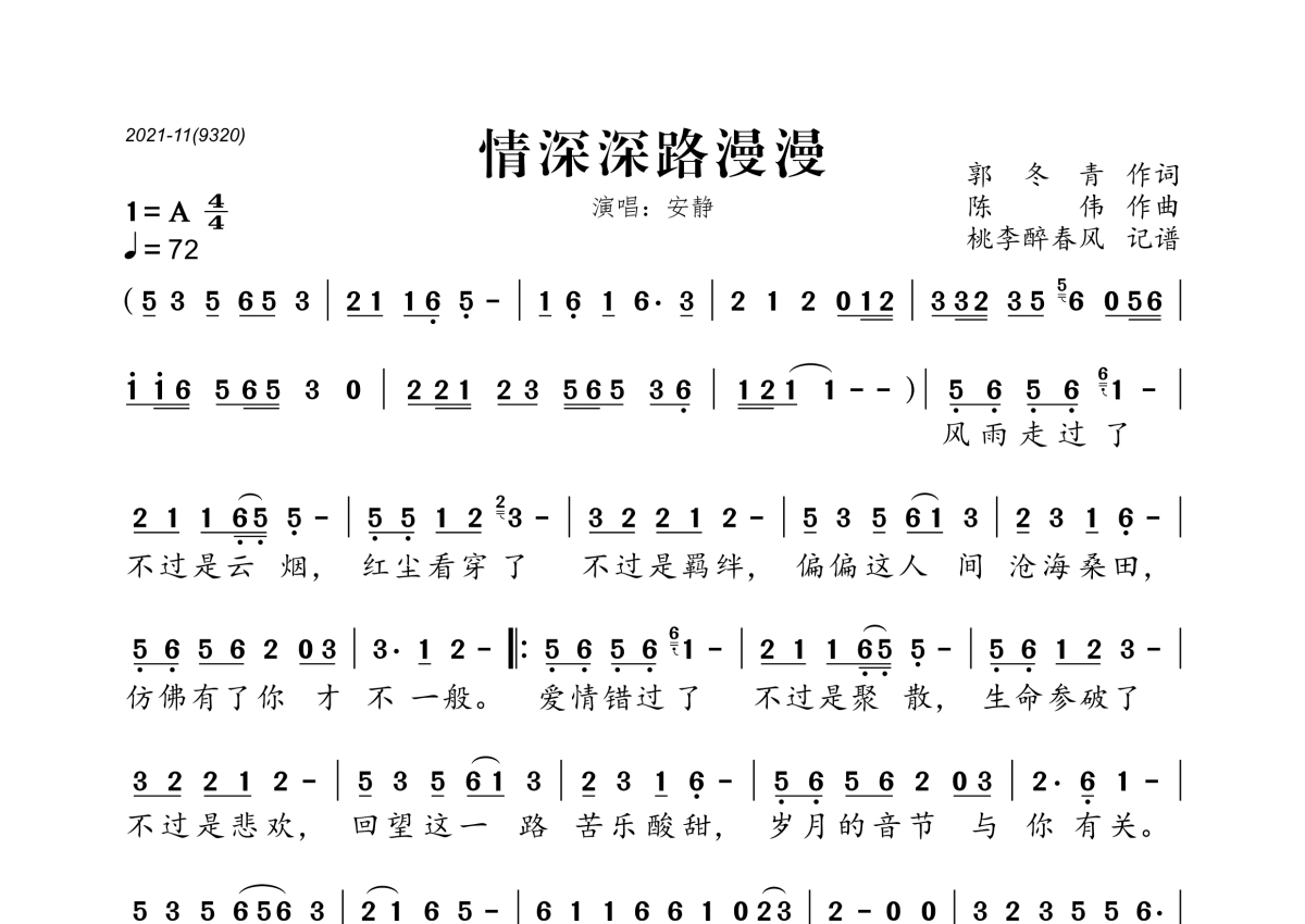 安静《情深深路漫漫》简谱